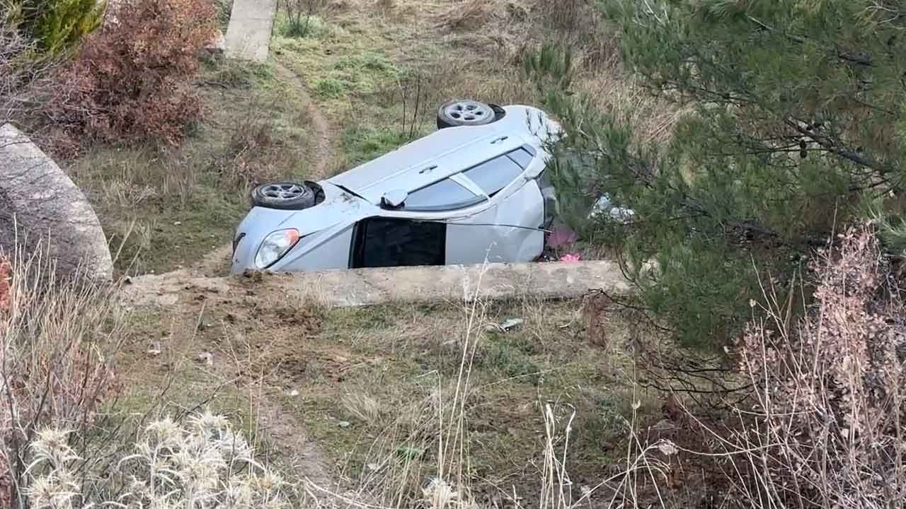 Karşı şeride geçen ve kontrolden çıkan otomobil daha sonra yol kanarında bulunan bir bahçeye devrildi.